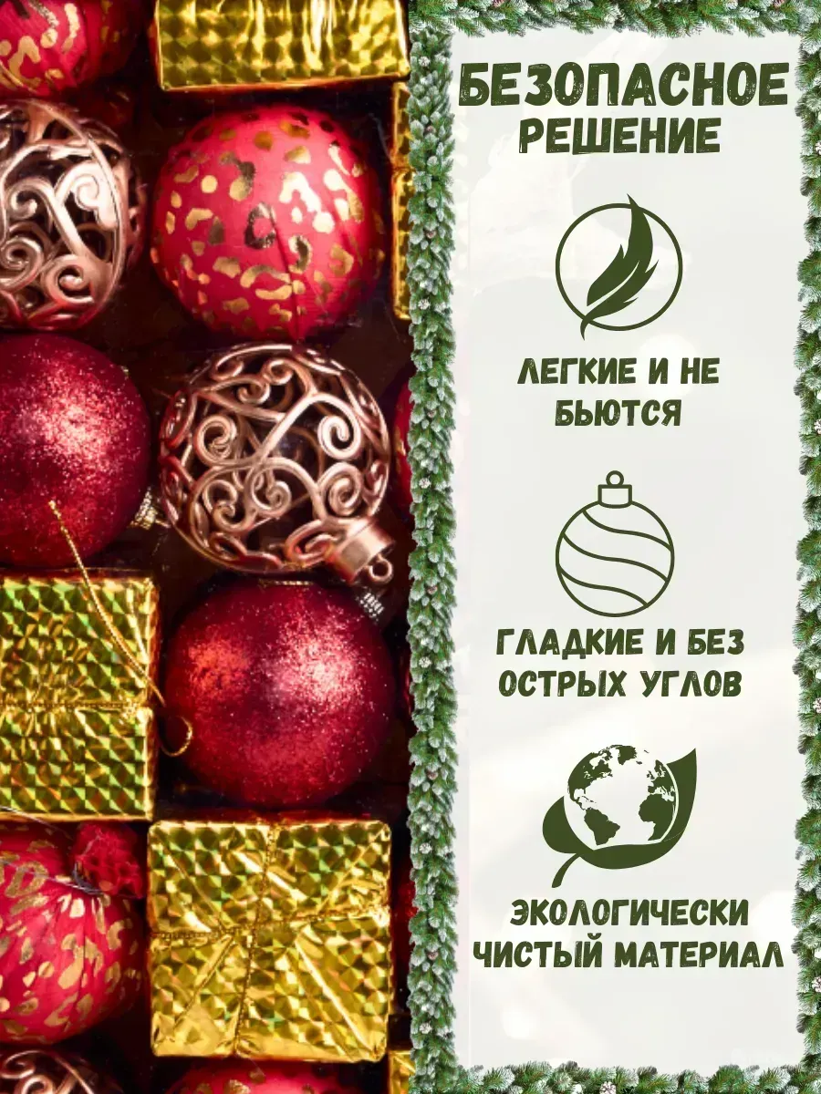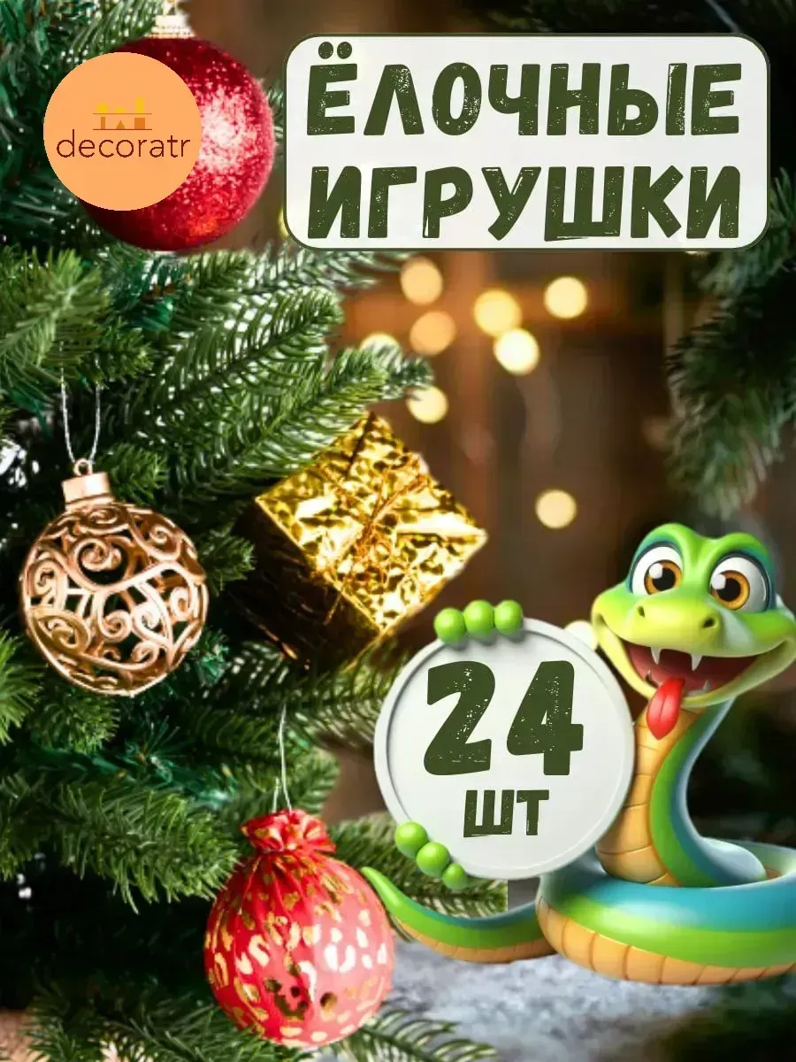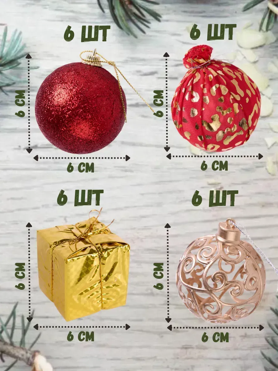 Елочные украшения новогодние шары набор игрушек на елку. Новогодний набор елочных шаров и игрушек в праздничной упаковке представлен в комплектации 24 штук — включает в себя 2 формы: шары и подарки.