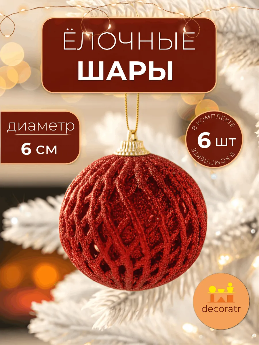 Почувствуйте, как приближается настоящее волшебство! Вот это находка для тех, кто создаёт атмосферу праздника с особой любовью. Набор из 6 красных ёлочных шаров диаметром 6 см с роскошной рельефной поверхностью превратит вашу ёлку в произведение искусства. Материал — качественный пластик с глиттерным покрытием, которое сверкает тысячами огоньков.