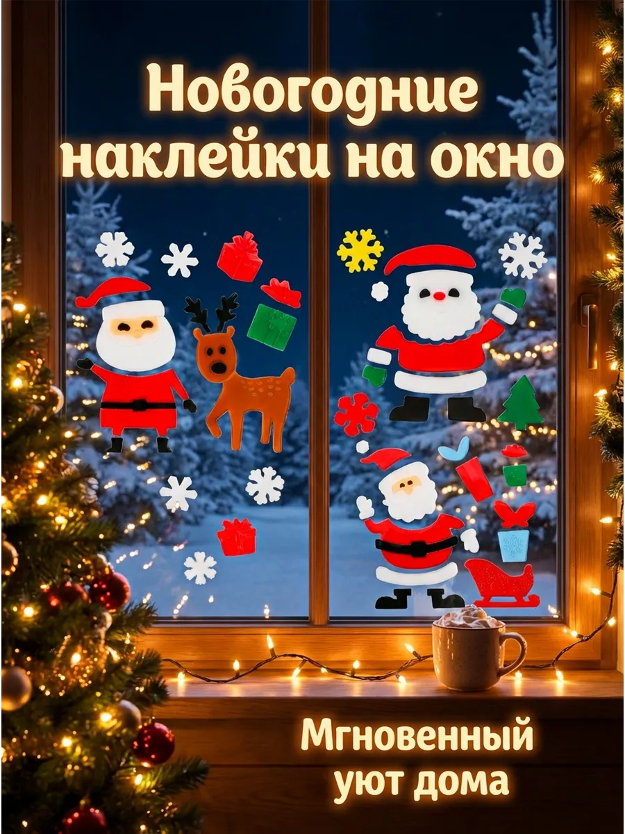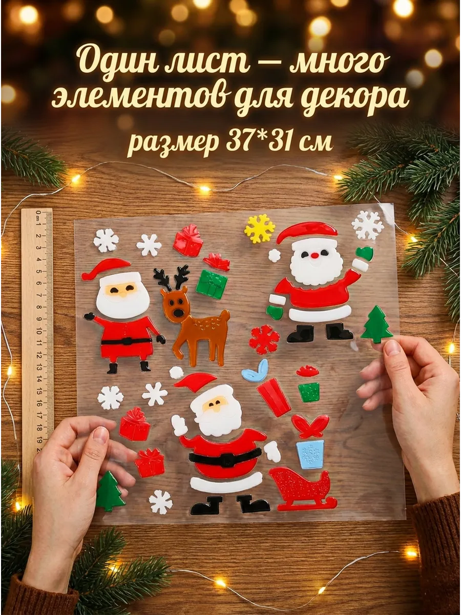Deco-Decoratr рекомендует использовать эти новогодние украшения для декора окон, зеркал, холодильника, детской мебели. Гелевые наклейки легко клеятся и снимаются, не оставляя следов!