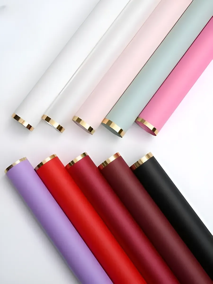 Пленка матовая для цветов 58*58 см 20 шт в листах является универсальным материалом для упаковки, который широко применяется в различных сферах. Пленка непрозрачная, матовая, односторонняя с с золотым краем. Плотность 50 мкр.