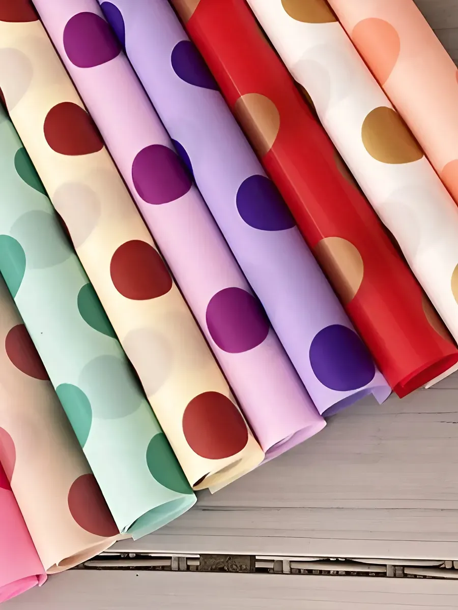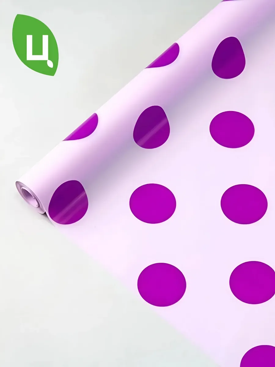 Пленка матовая для цветов в рулоне является универсальным материалом для упаковки, который широко применяется в различных сферах. Пленка непрозрачная, матовая, с рисунком в горошек. Плотность 40 мкр.