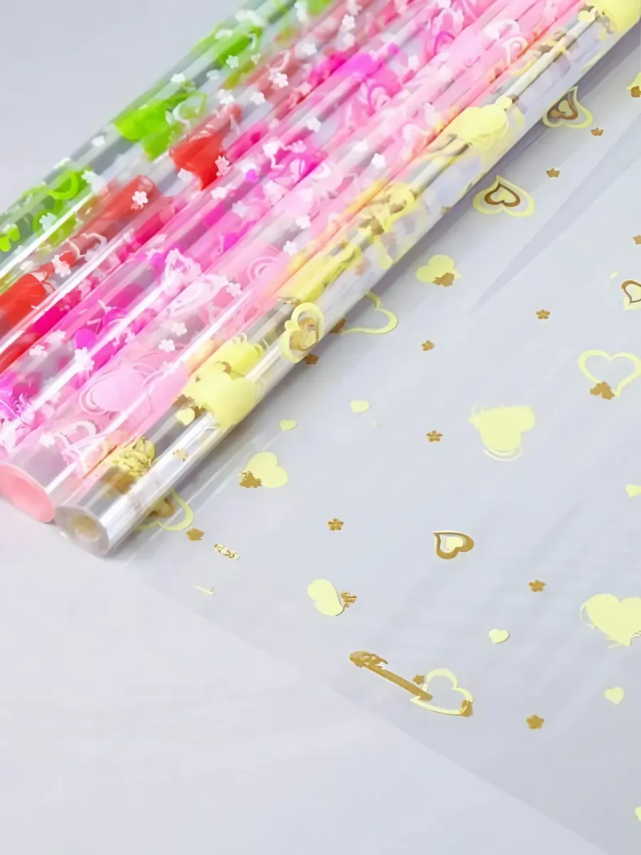 Упаковочная пленка пленка прозрачная с рисунком подарочная для букетов и подарков, 9 м* 0,7 м *40 мкм.