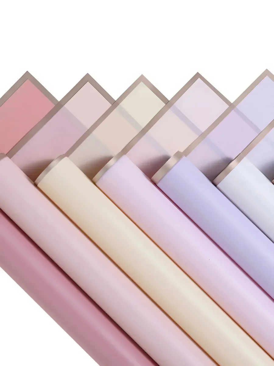 Полупрозрачная упаковка для цветов позволяет создавать многослойные композиции с эффектом градиента. Накладывайте 2-3 листа с разной плотностью для получения уникальной глубины цвета.