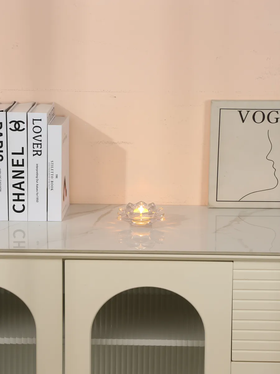 Этот стеклянный подсвечник для чайных свечей выполнен в форме распустившегося цветка лотоса — символа чистоты и гармонии. Каждый лепесток отшлифован до совершенства, создавая удивительную игру света и тени. Прозрачное стекло словно хрустальная вода отражает пламя свечи, наполняя пространство теплым, уютным сиянием.