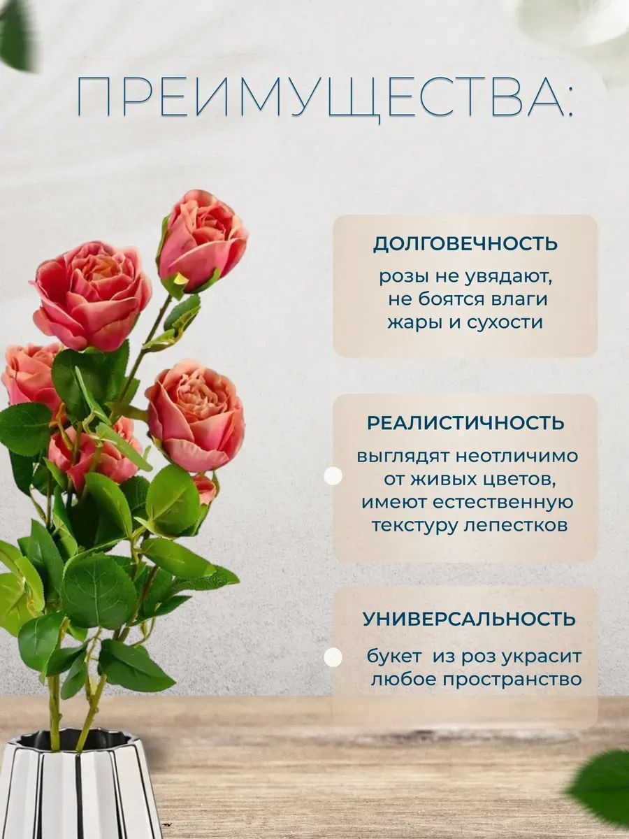 Итак, почему тебе необходимо купить эти искусственные цветы розы? Во-первых, они невероятно красивы и реалистичны. Во-вторых, они очень практичны и могут быть использованы повторно. В-третьих, они идеально подходят для любого случая, от свадьбы до фотосессии или просто как подарок. И самое главное — они добавят немного романтики и шика в твою жизнь!