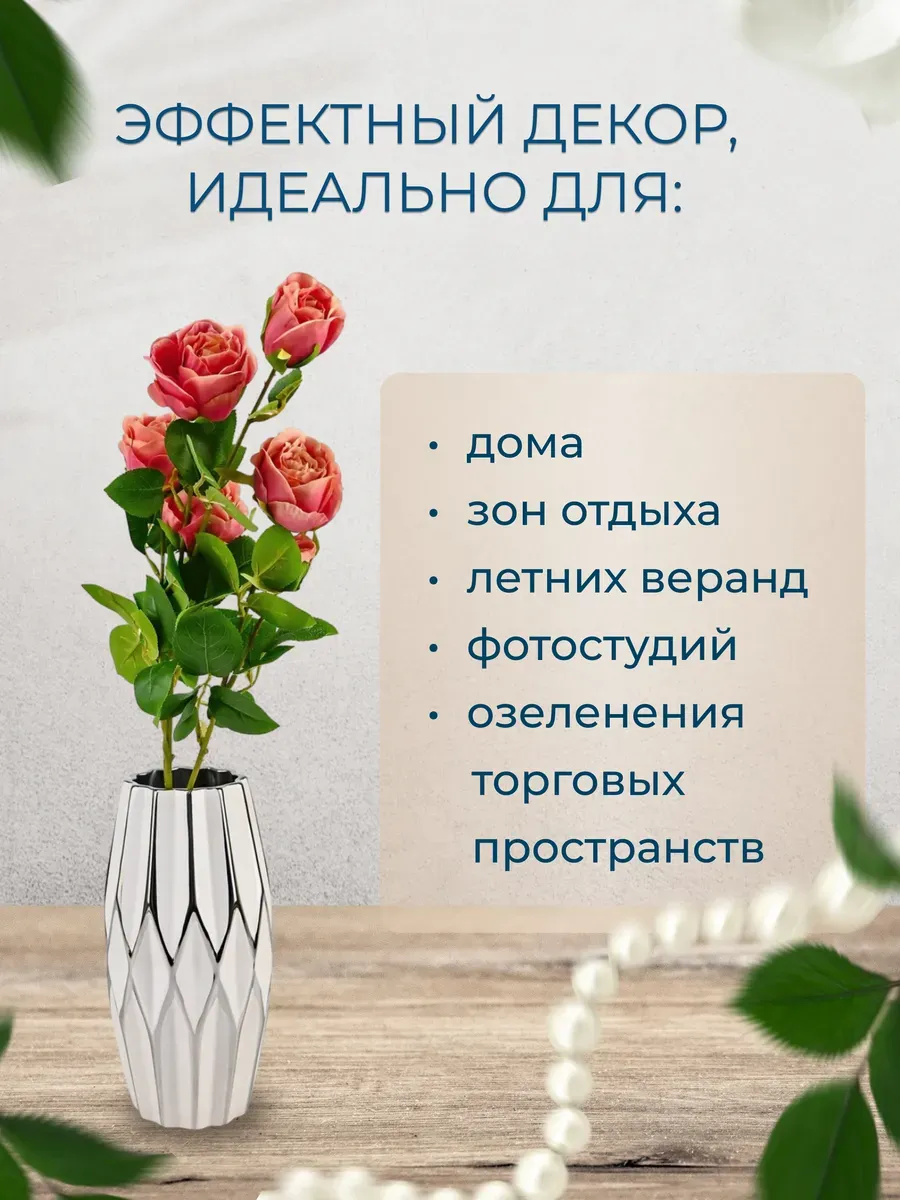 Эти искусственные розы также очень практичны. Ты можешь использовать их повторно, и они не требуют особого ухода. Просто протри их влажной тряпкой, и они снова будут выглядеть как новые! И не беспокойся о сезонности — эти розы доступны круглый год, так что ты можешь наслаждаться ими в любое время. Ты можешь использовать их как отдельный элемент декора или объединить с другими искусственными растениями, чтобы создать уникальную композицию.