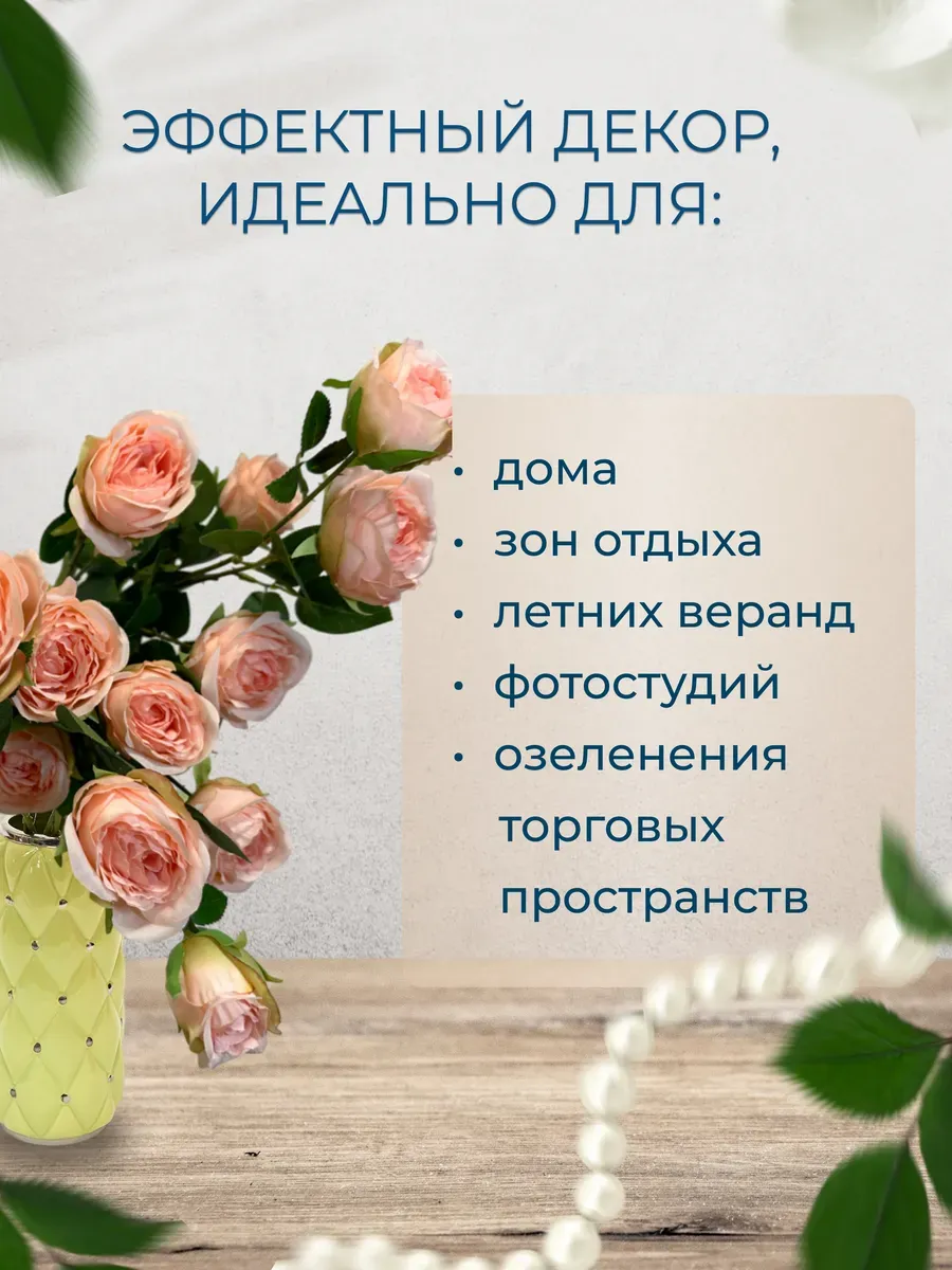 Эти искусственные розы также очень практичны. Ты можешь использовать их повторно, и они не требуют особого ухода. Просто протри их влажной тряпкой, и они снова будут выглядеть как новые! И не беспокойся о сезонности — эти розы доступны круглый год, так что ты можешь наслаждаться ими в любое время. Ты можешь использовать их как отдельный элемент декора или объединить с другими искусственными растениями, чтобы создать уникальную композицию.
