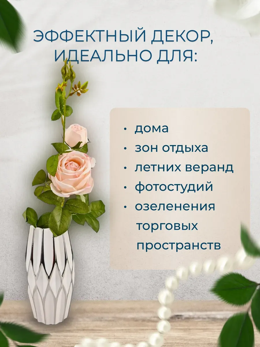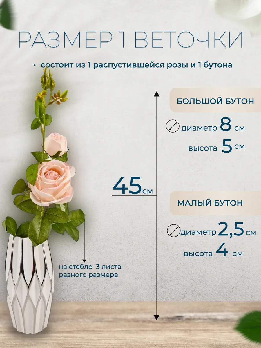 Эти искусственные розы также очень практичны. Ты можешь использовать их повторно, и они не требуют особого ухода. Просто протри их влажной тряпкой, и они снова будут выглядеть как новые! И не беспокойся о сезонности — эти розы доступны круглый год, так что ты можешь наслаждаться ими в любое время. Ты можешь использовать их как отдельный элемент декора или объединить с другими искусственными растениями, чтобы создать уникальную композицию.