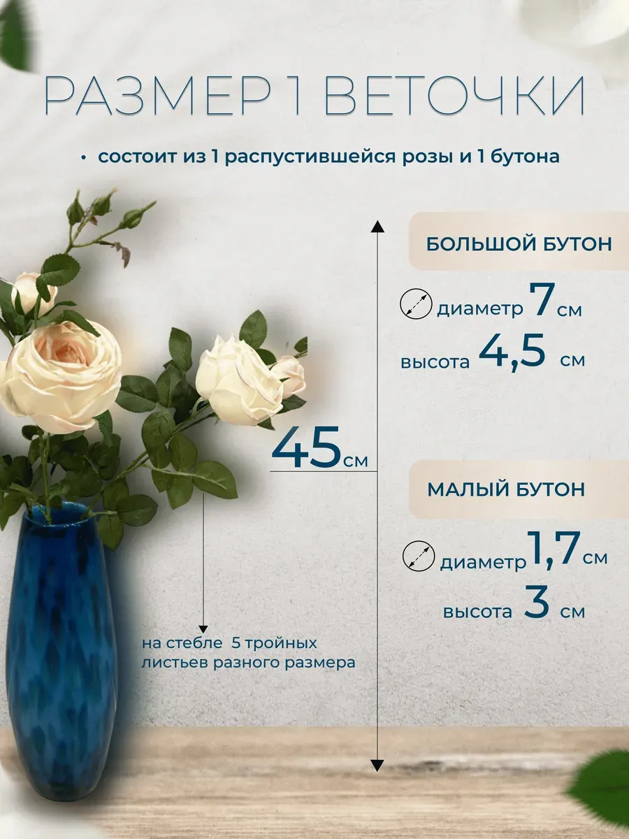 Одна ветка этих роз содержит несколько цветков, что делает их очень реалистичными и объемными. Ты можешь использовать их отдельно или объединить с другими цветами и зеленью, чтобы создать свой уникальный букет. А если ты хочешь добавить немного драматизма, то можешь использовать их в качестве центральной композиции на свадьбе или фотосессии. Эти розы также идеально подходят для декора дома, кухни или любой другой комнаты. Просто поставь их в вазу или контейнер, и они станут прекрасным дополнением к твоему интерьеру.