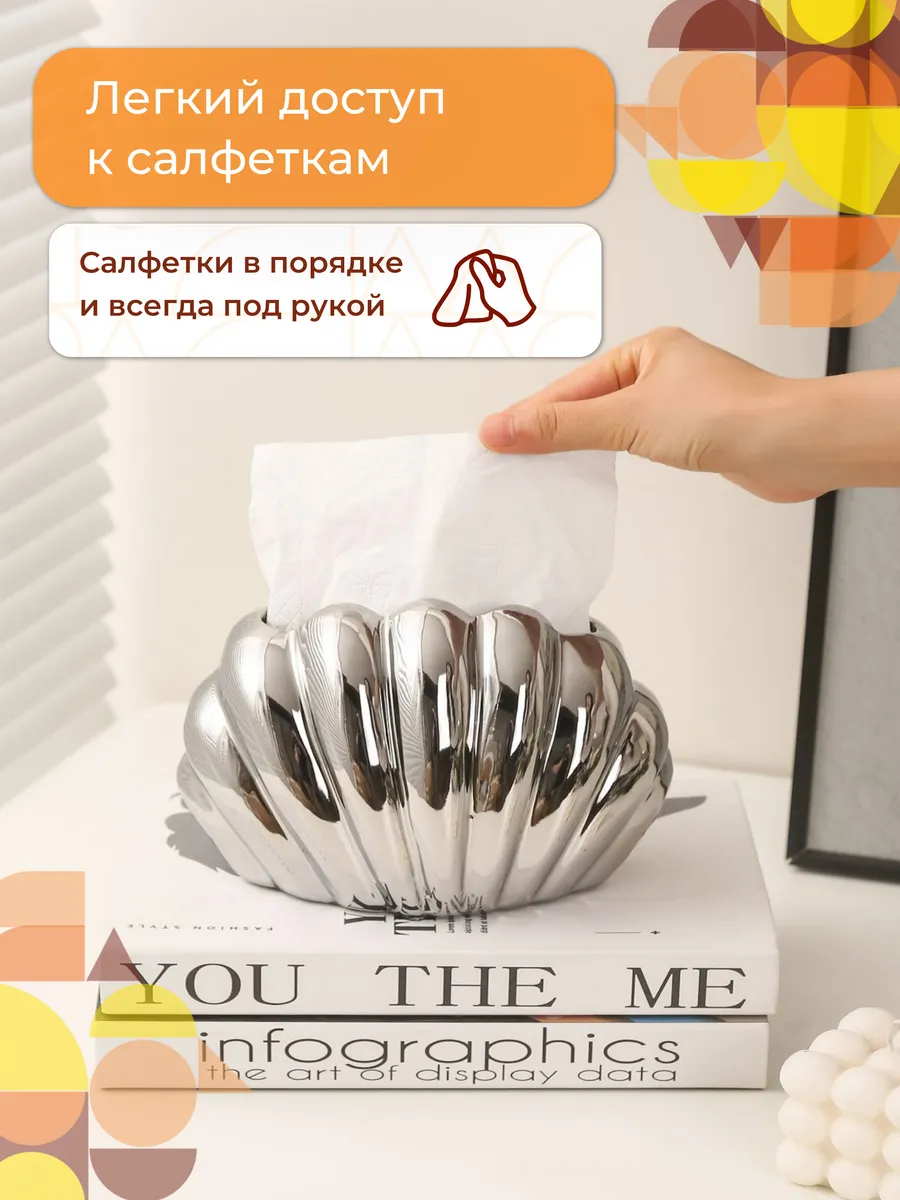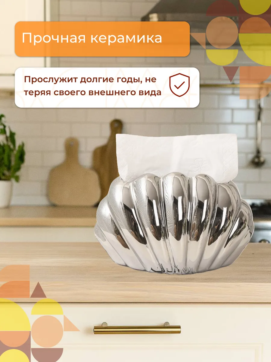 Керамическая ракушка идеально сочетает в себе функциональность и эстетику. Этот стильный держатель для салфеток «ракушка» станет центральным элементом вашего стола, привлекая восхищенные взгляды гостей. Нежные изгибы и потрясающая текстура, повторяющая природные линии настоящих морских сокровищ, делают этот органайзер для бумажных салфеток по-настоящему уникальным.