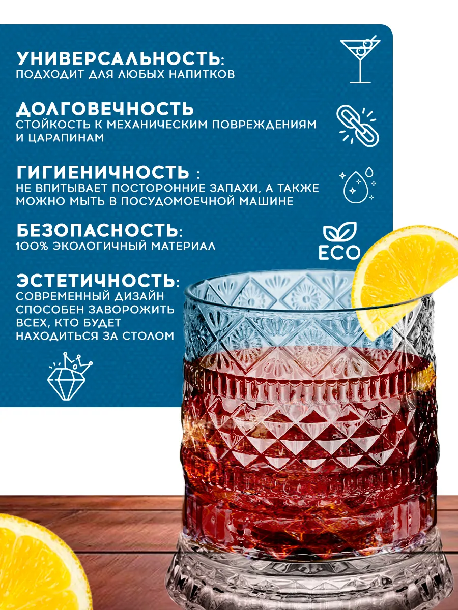 Этот прозрачный бокал подходит для любых напитков: от освежающего лимонада и до крепкого виски. Не важно, хотите ли вы насладиться холодным соком или порадовать себя алкогольным коктейлем – этот стакан стеклянный справится с любой задачей.