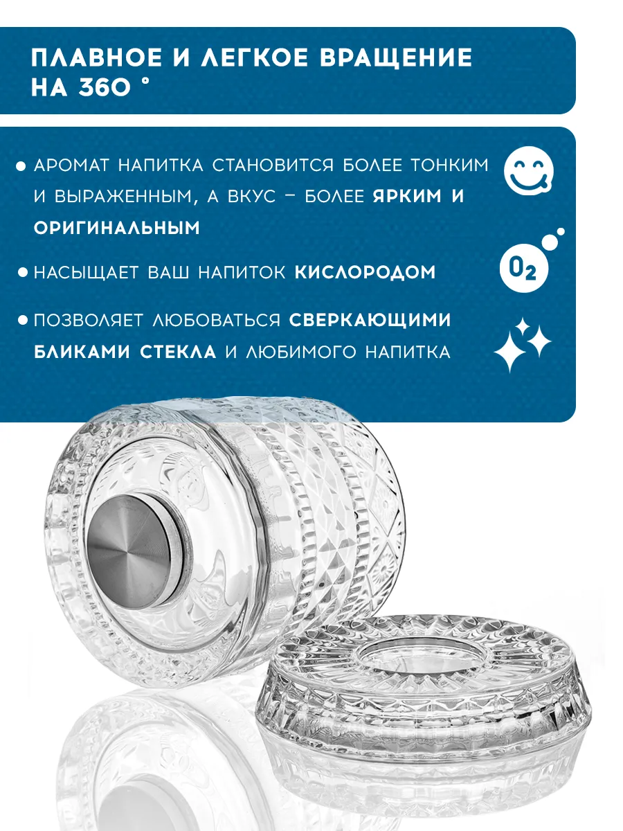 Удобная подставка под стакан обеспечивает легкость вращения на 360 градусов, что делает использование этого стеклянного бокала особенно удобным во время праздников или просто в день отдыха.