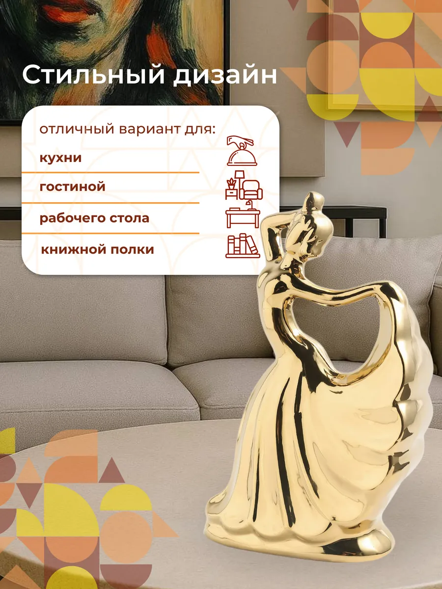Эта статуэтка женщины для интерьера премиум станет доминантой любого пространства. Поставьте её на каминную полку, консоль в гостиной или в личный кабинет — и наблюдайте, как помещение обретает статус галереи современного искусства. Керамическая фигурка балерины золото безупречно впишется в стили арт-деко, неоклассика, luxury или современный гламур.