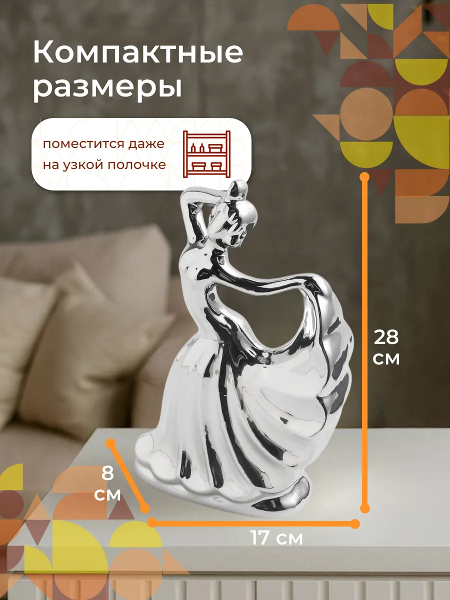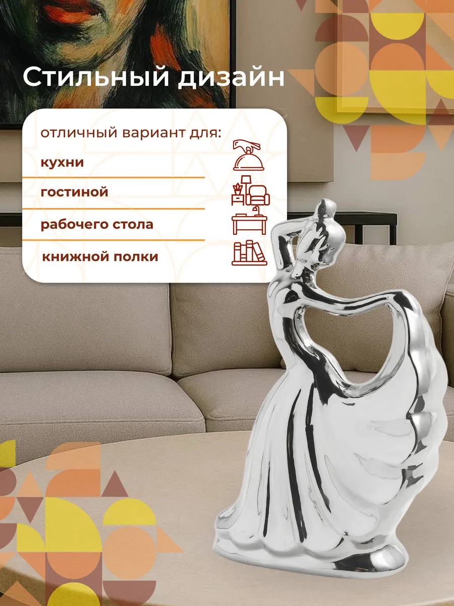 Эта статуэтка женщины для интерьера станет изюминкой любого пространства. Поставьте её на туалетный столик в спальне, книжную полку в гостиной или консоль в прихожей — и наблюдайте, как комната наполняется атмосферой театральной роскоши. Керамическая фигурка балерины серебро идеально впишется в стили арт-деко, современная классика, гламур или минимализм.