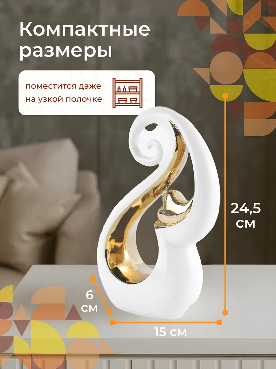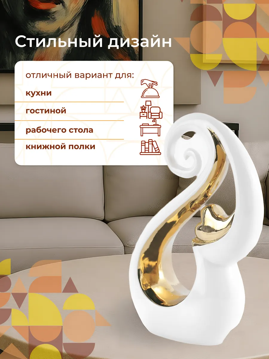 Компактный размер 24,5×15 см делает эту фигурку декоративную универсальной для любого помещения. Статуэтка золотая керамическая одинаково эффектно смотрится в минималистичной квартире-студии и в просторном загородном доме.