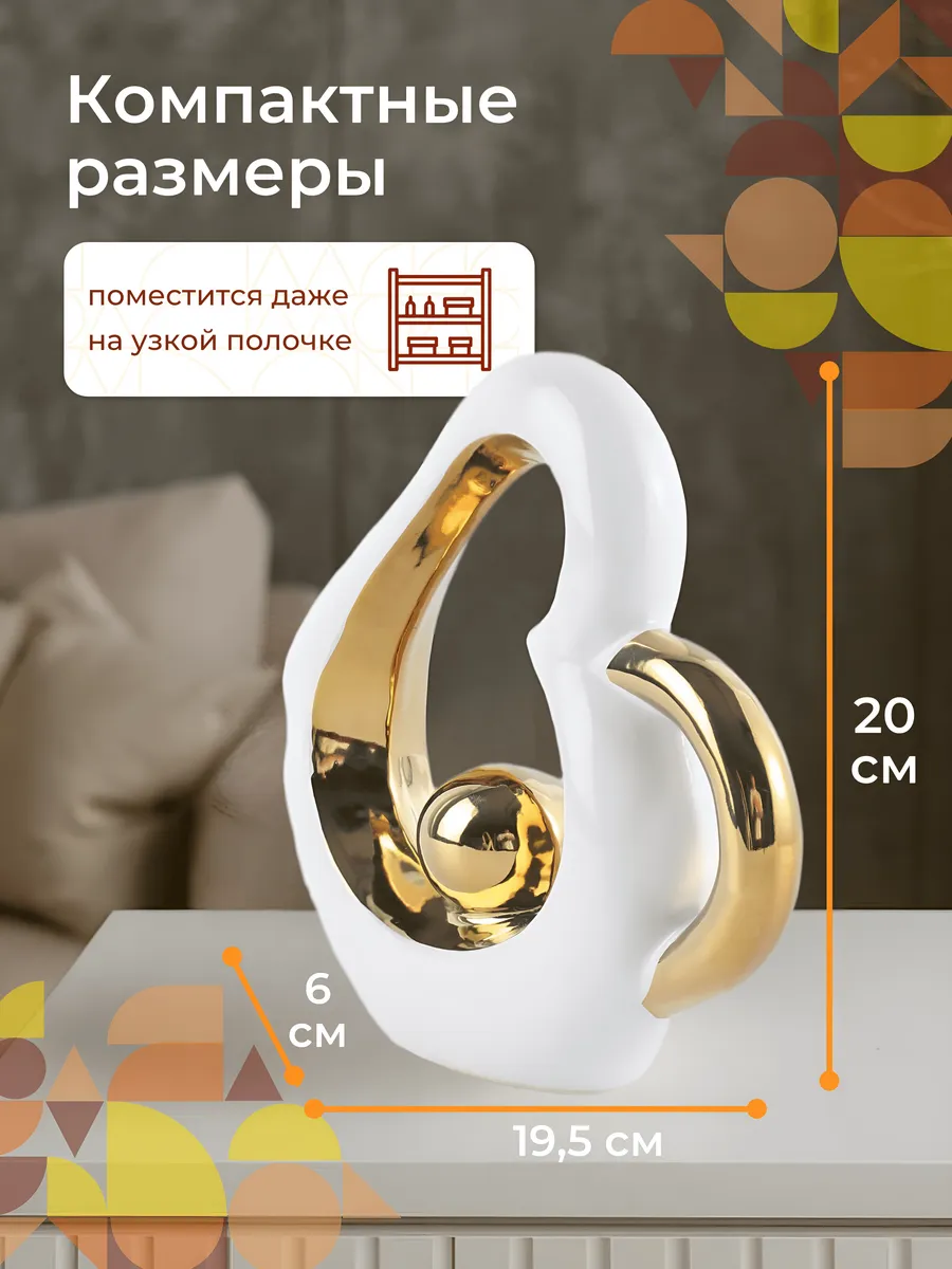Контраст белой матовой керамики и золотого зеркального покрытия создаёт эффект драгоценности в оправе. Статуэтки для полки золотые такого исполнения — это выбор тех, кто ценит современное искусство и символизм. Золотой шар в центре композиции добавляет объём и глубину, делая фигурку сердце для интерьера похожей на ювелирное украшение для дома.