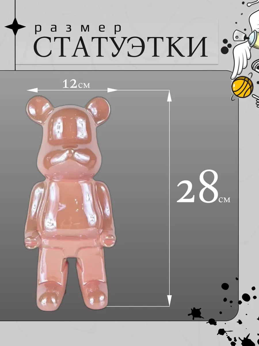 Встречайте культовую керамическую статуэтку медведь Bearbrick высотой 28 см — настоящую икону современного искусства и декора! Этот розовый красавец с глянцевой поверхностью мгновенно превратит любое пространство в арт-галерею.