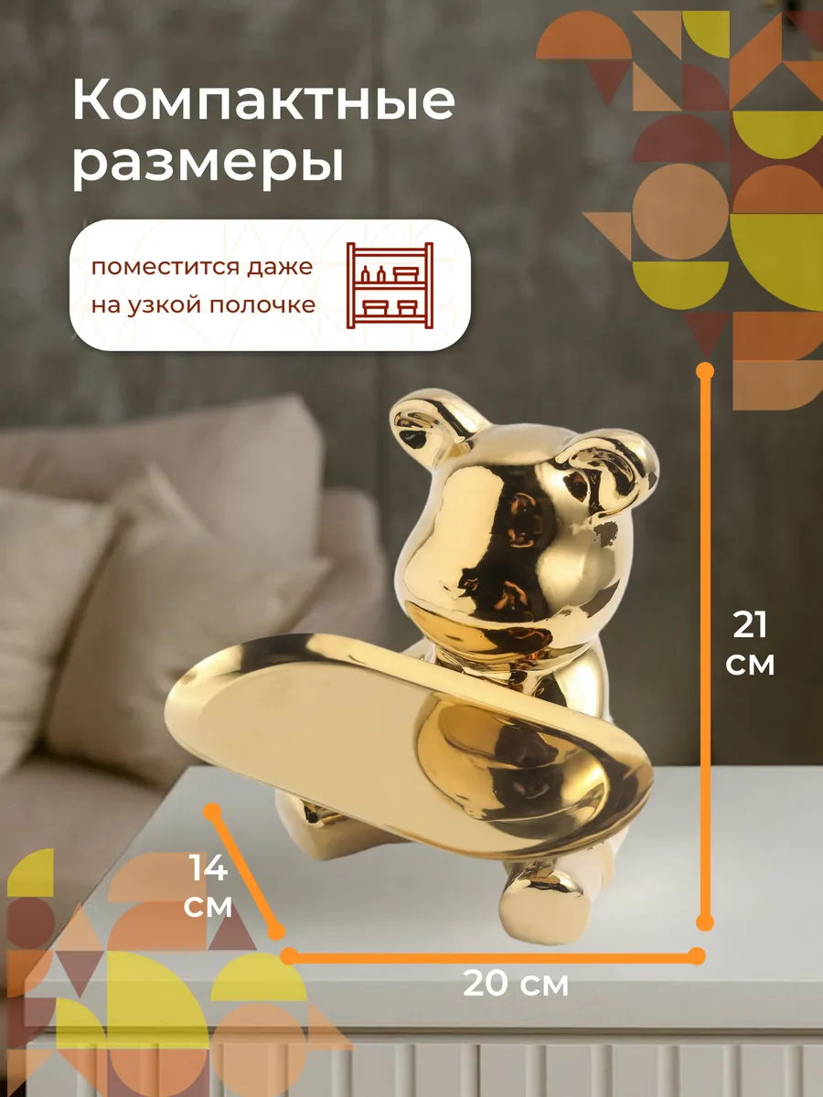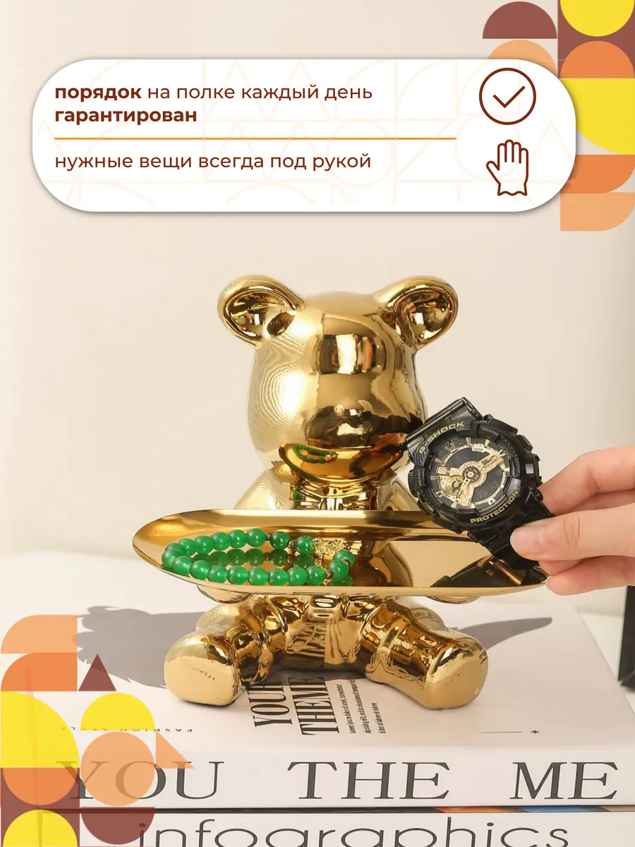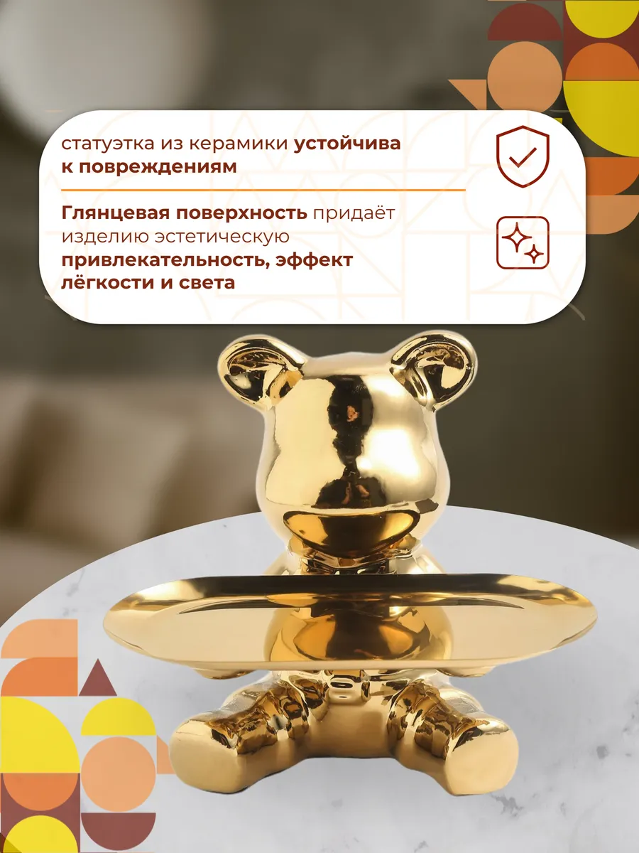 Статуэтка декоративная для дома станет роскошным подарком на Новый год и Рождество — золотой медведь принесёт удачу и процветание в наступающем году. Преподнесите её на день рождения любимой женщине или подарите на новоселье паре — органайзер для украшений декоративный подчеркнёт ваше внимание к деталям. На корпоратив это будет запоминающийся подарок для ценительницы красивых вещей.