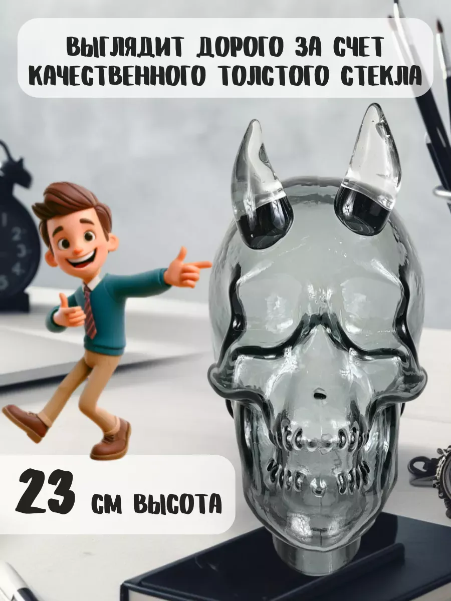 «Статуэтка стеклянная череп с рогами — превратите дом в арт-пространство! Представьте себе: гости замирают у входа, завороженные загадочным силуэтом на полке. Статуэтка «Демон Кристалла» высотой 23 см — это не просто стеклянный декор для дома, а настоящий арт-объект, который мгновенно меняет атмосферу любого пространства! Вот это да! Прозрачное стекло с дымчатыми переливами создаёт невероятную игру…