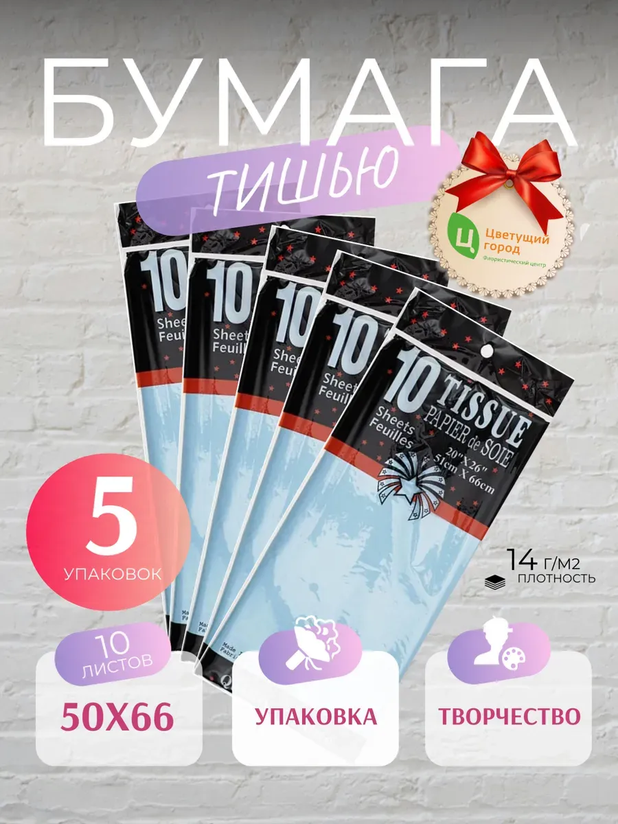 Бумага тишью 5 уп — это универсальный и стильный материал, который отлично подходит для упаковки подарков и создания декора.