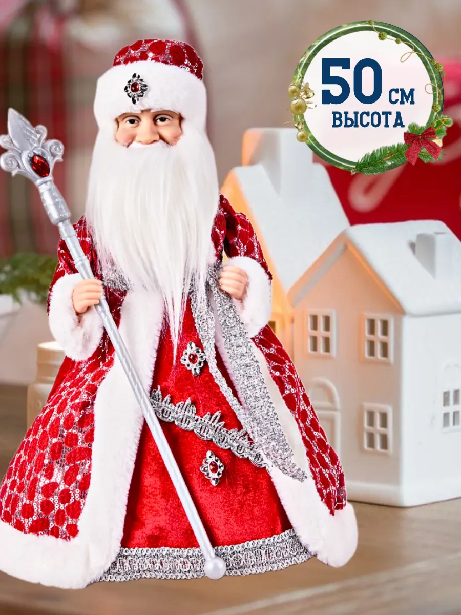 Санта-Клаус или Российский Дед Мороз с бородой высокий 50 см.