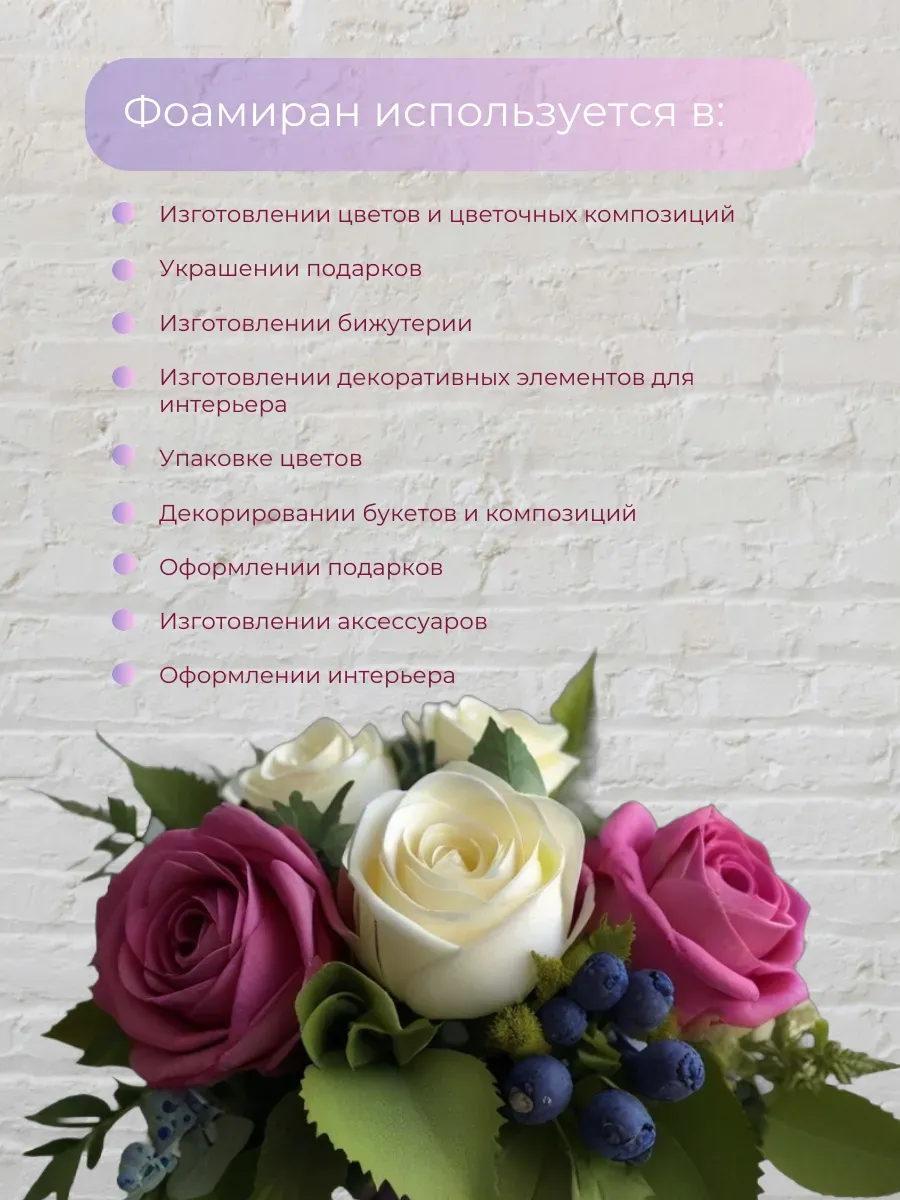 Набор фоамирана включает разнообразные цвета, позволяя творить без ограничений. Любой сможет успешно использовать цветной фоамиран для изготовления цветов из фоамирана, подарков и многих других украшений, трансформируя простые элементы в настоящие произведения искусства.