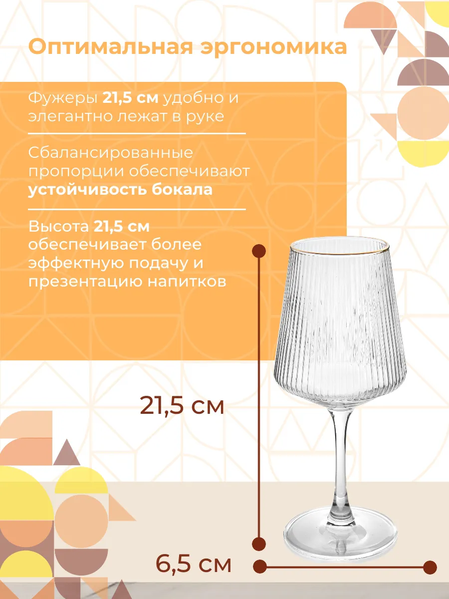 Каждый фужер из набора создан с любовью к деталям: утонченная ножка обеспечивает удобство использования, а прозрачное стекло добавляет изящества любому столу. Прозрачность стеклянных бокалов позволяет насладиться цветом вашего алкоголя: будь то насыщенное красное вино или игристый шампанский блик. Необычный дизайн сделает ваши застолья особенными, а гостей — счастливыми.