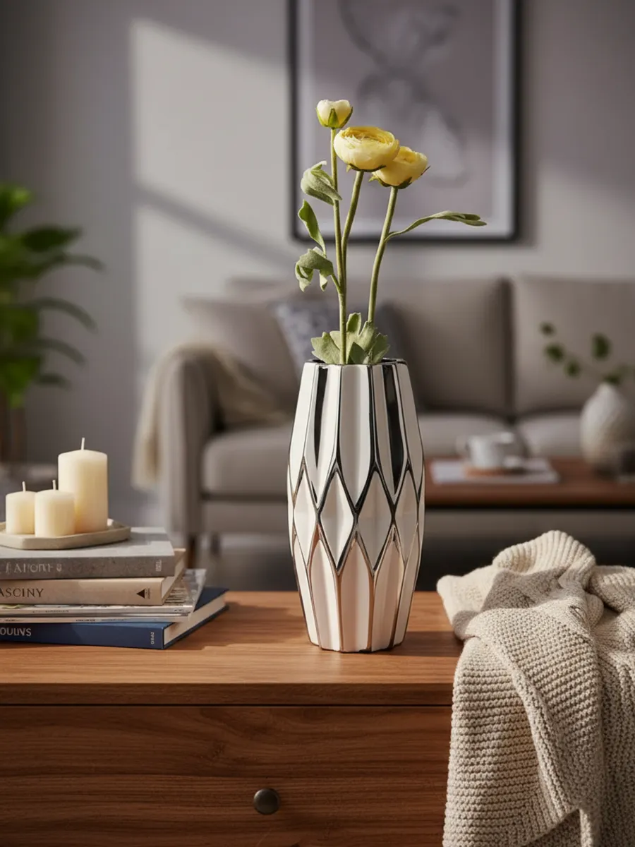 1. Центральная композиция на столе: Поставьте вазу с искусственными цветами в центре обеденного стола. Они добавят элегантности и утонченности каждому приему пищи, без боязни, что цветы увянут к следующему ужину.