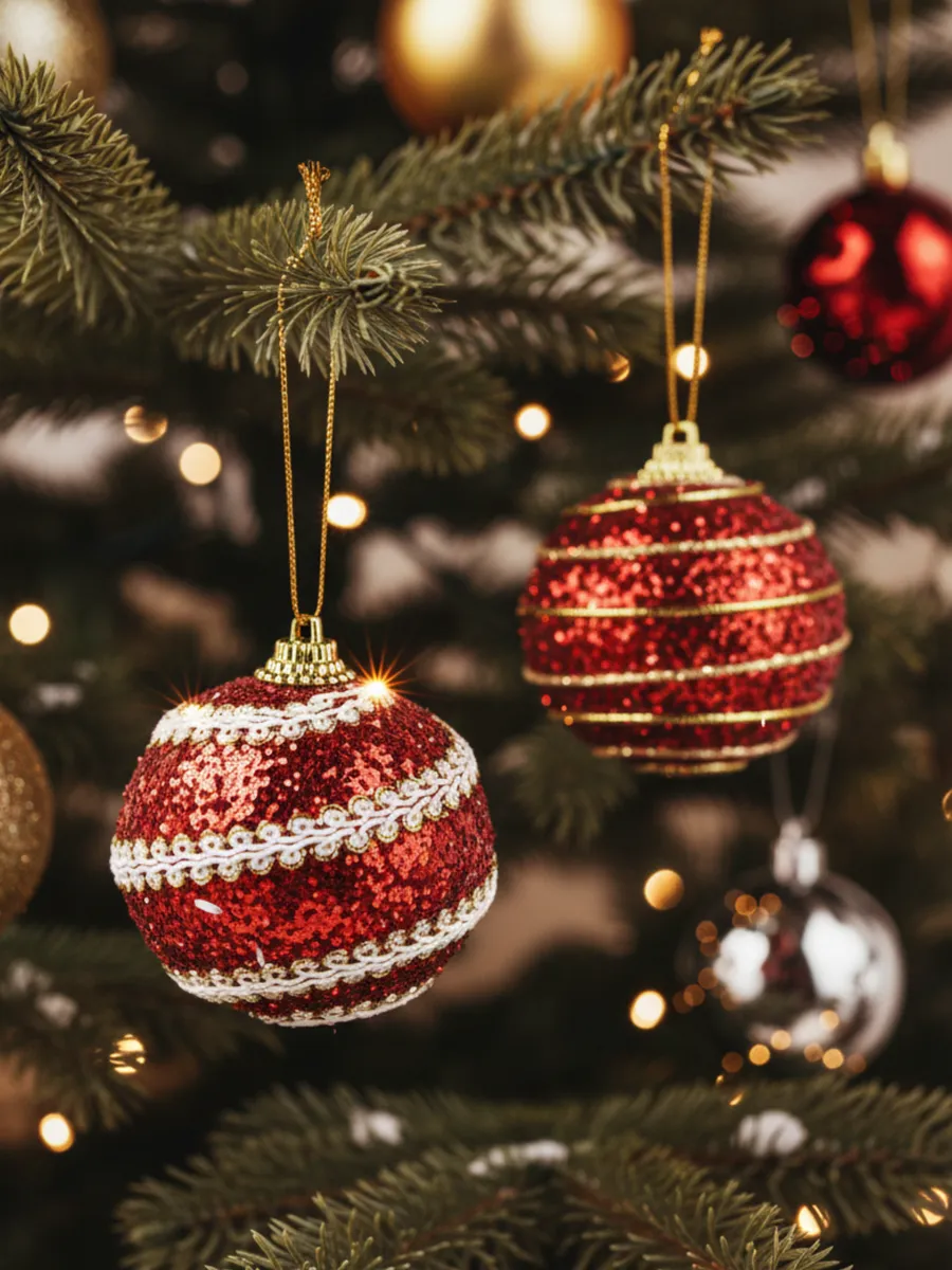 Каждый шарик переливается в свете гирлянд, словно драгоценный камень! Красные новогодние шары с золотыми акцентами мгновенно преображают любую ёлку, превращая её в центр праздничного интерьера. Ёлочные украшения набор от Deco-Decoratr — это гарантия качества и стиля.