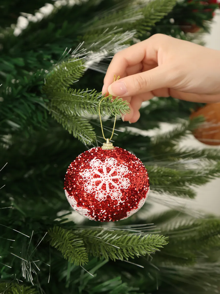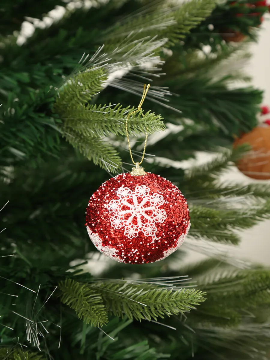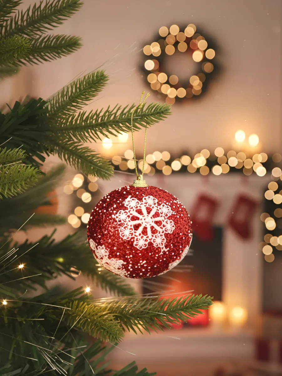 Ощутите лёгкость каждого шара в руках — качественный пластик не разобьётся, а насыщенный красный цвет с белыми переливами радует глаз и создаёт праздничное настроение. Декоративные снежинки словно танцуют на поверхности, напоминая о морозных узорах на окнах.