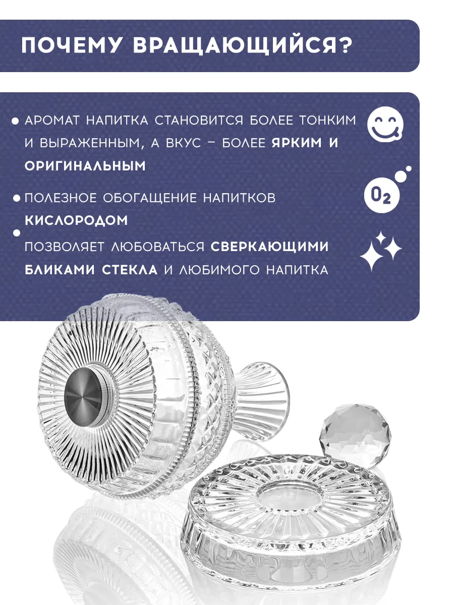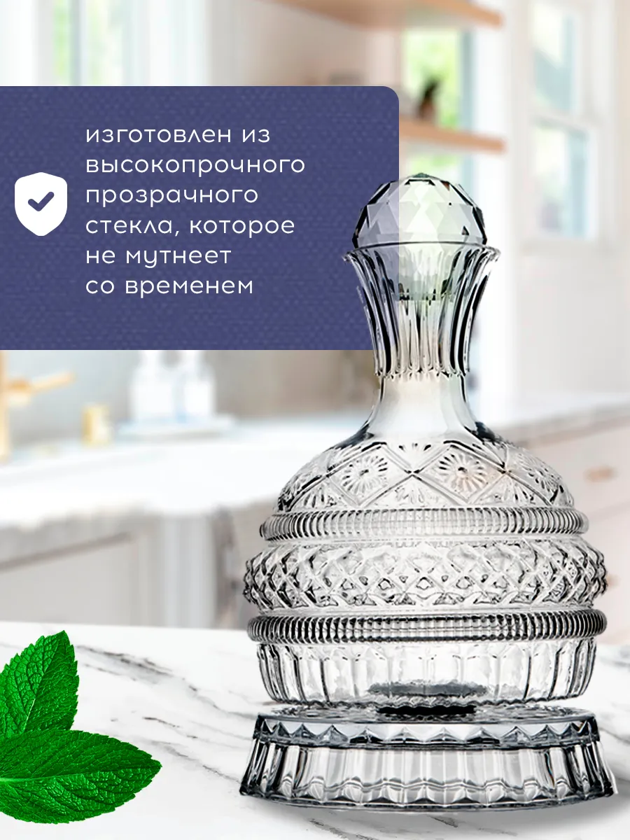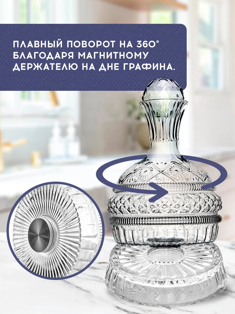 Итак, представьте: вы сидите за столом, вокруг царит праздничное настроение, а у вас перед глазами этот невероятный прозрачный графин! Декантер удобно держать в руке, а благодаря подставке он легко вращается на 360 градусов. Да-да, это удобство нового уровня!